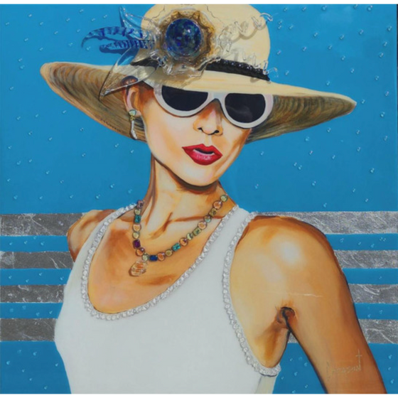 Mixed Media Giclee piece comprised of Acrylic, foil, glass and resin on board-mounted canvas.