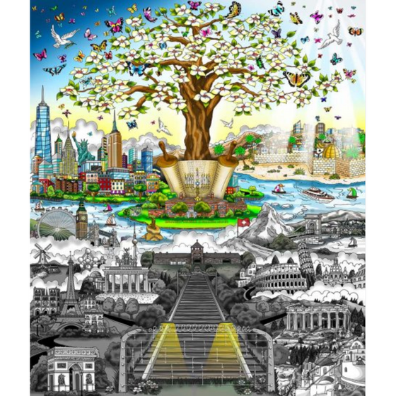 Initially created for The Holocaust Memorial & Tolerance Center of Nassau County, “After the Darkness” is a compelling look at the life and the hope that arose from the ashes of the Holocaust. It evokes the gloom and suffering of the times, and yet blooms into a celebration of the resilience, the love, and the light that we hold onto as the legacy of such a dark period in history. A portion of the proceeds from the sale of this edition benefit HMTC and other Holocaust museums and centers throughout the country.