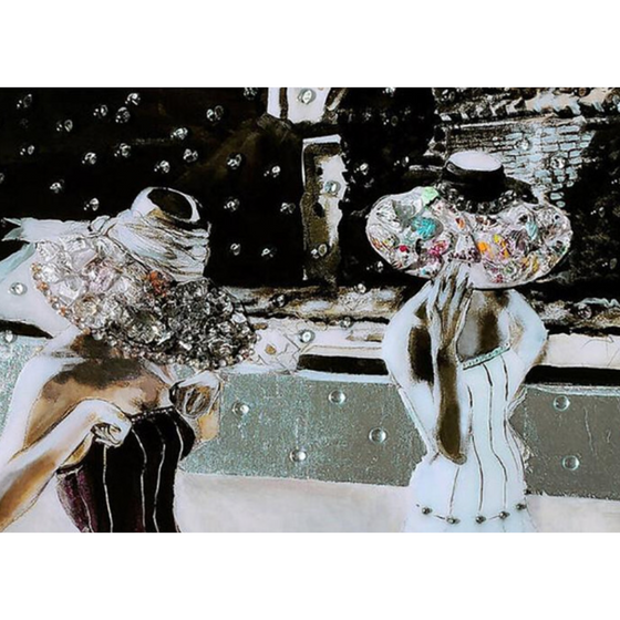 Every one-of-a-kind Creason masterpiece is created using a blend of acrylic, glass, foil and clear lacquer on mounted canvas. Each piece is entirely unique and as such each piece will vary slightly in color and styling.