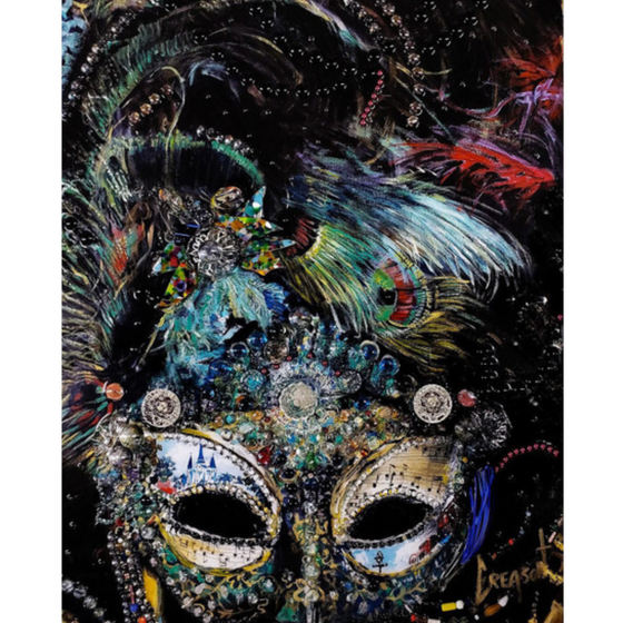 Mixed Media Giclee piece comprised of Acrylic, foil, glass and resin on board-mounted canvas. Please note each piece will vary slightly in color and styling.