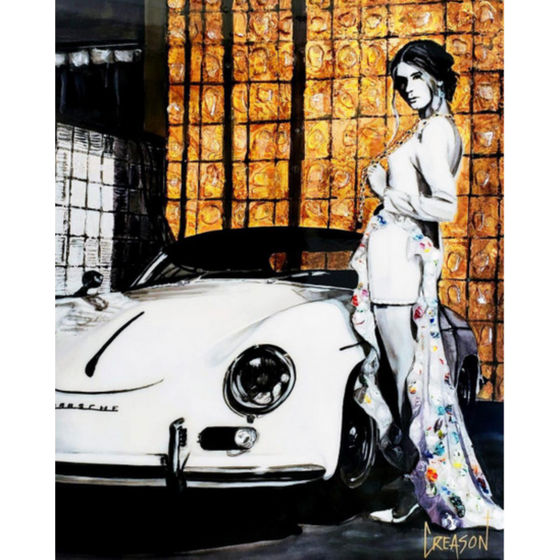 Mixed Media Giclee piece comprised of Acrylic, foil, glass and resin on board-mounted canvas. Please note each piece will vary slightly in color and styling.