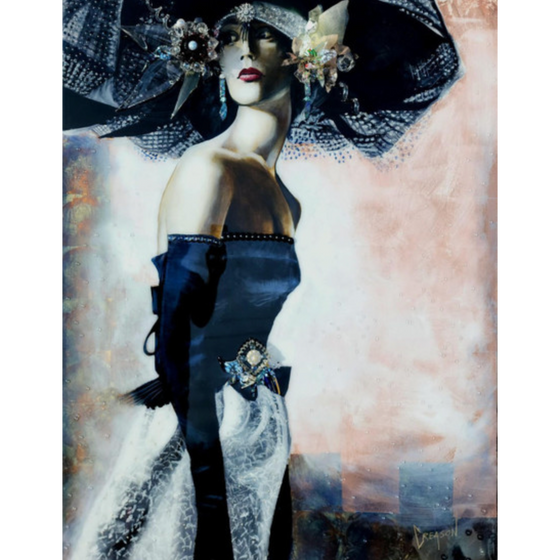 Every one-of-a-kind Creason masterpiece is created using a blend of acrylic, glass, foil and clear lacquer on mounted canvas. Each piece is entirely unique and as such each piece will vary slightly in color and styling.