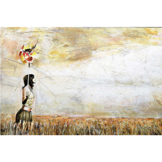 Mixed Media Giclee piece comprised of Acrylic, foil, glass and resin on board-mounted canvas. Please note each piece will vary slightly in color and styling.